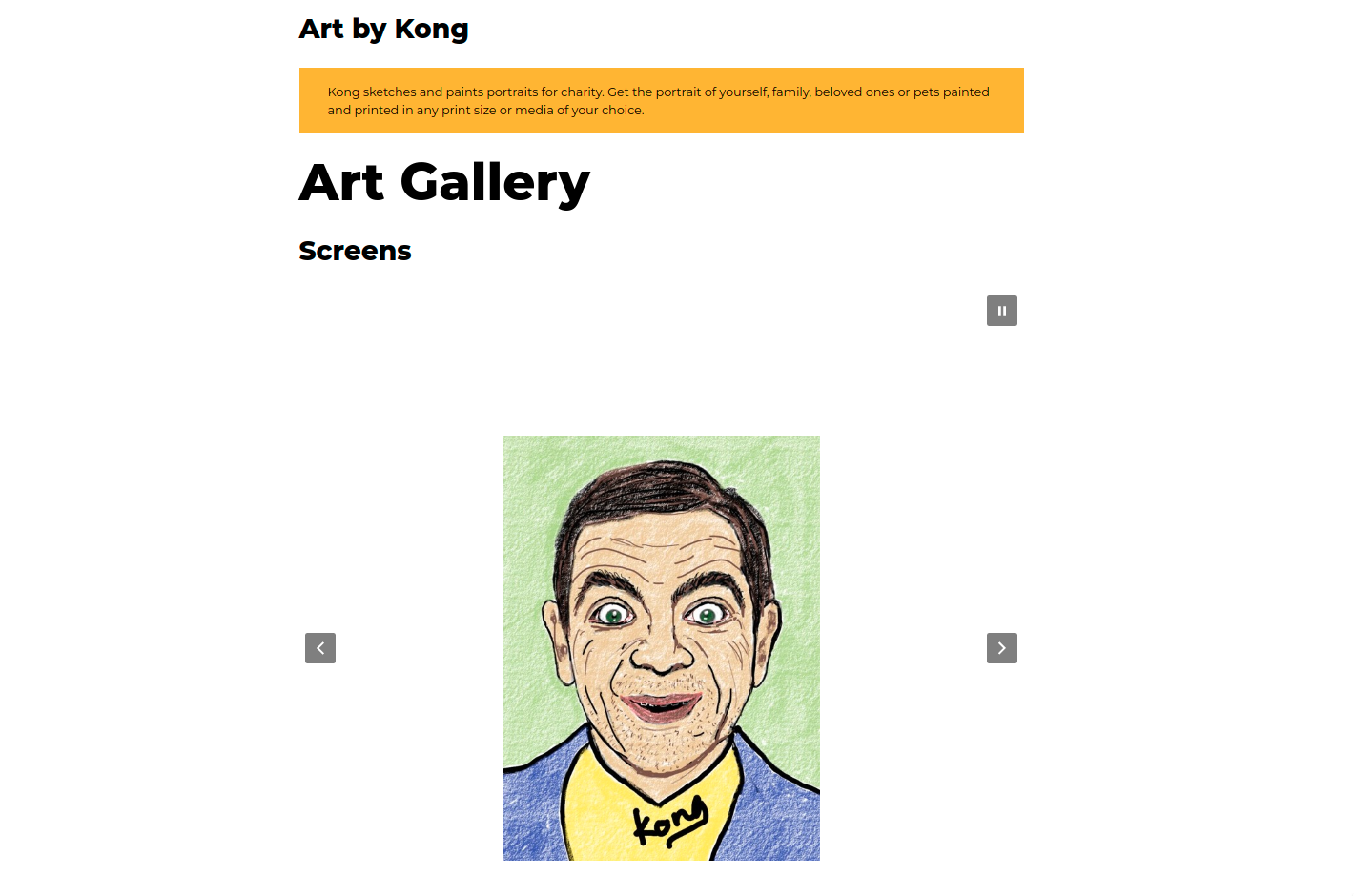 Kong sketches and paints portraits for charity. Get the portrait of yourself, family, beloved ones or pets painted and printed